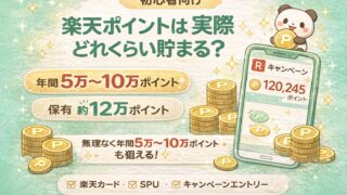 楽天ポイントは実際どれくらい貯まるのかを体験ベースで解説。年間5万〜10万ポイントのリアルや、なぜ貯まるのかの仕組み、初心者でも再現できる方法、無理なく続けるコツまでわかりやすくまとめました。